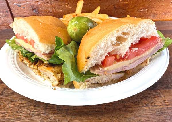 W/ham & swiss, lettuce & tomato On a fresh kaiser roll or pretzel bun Served with fries and pickle. Add egg for $1.50.