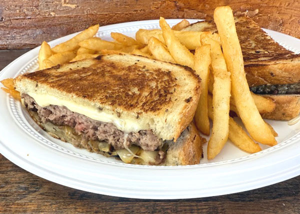 Sirloin burger with choice of cheese on grilled rye w fries. Add egg for $1.50.
